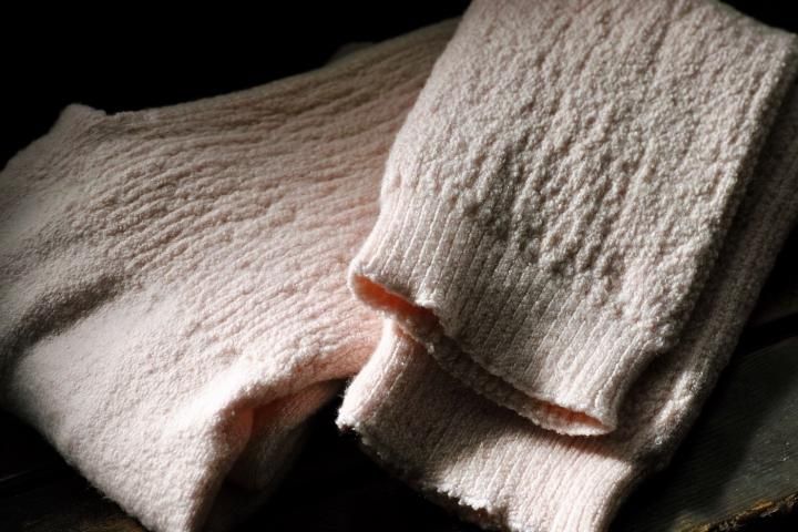 足首部分はあたたかさを閉じこめるリブ編み構造。