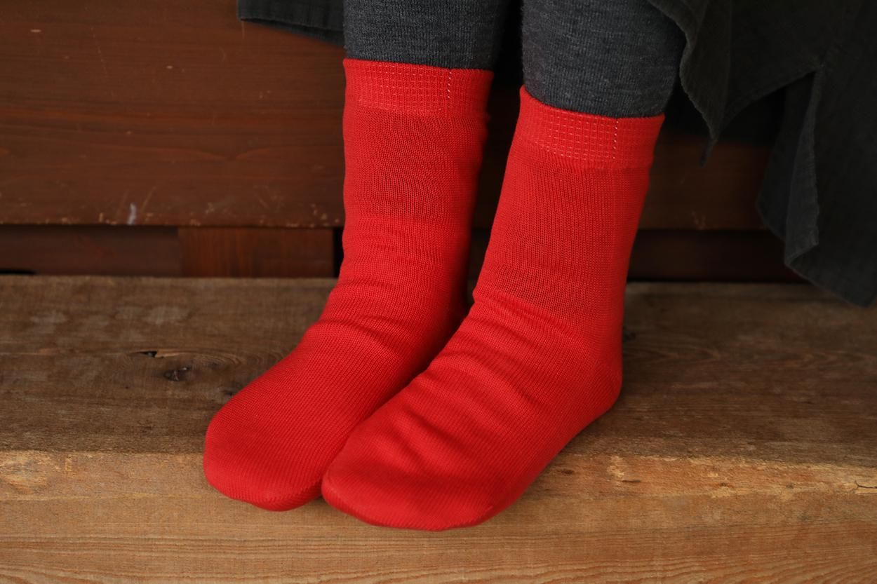 しめつけない特殊な編み方で編まれた天然素材の靴下です。
