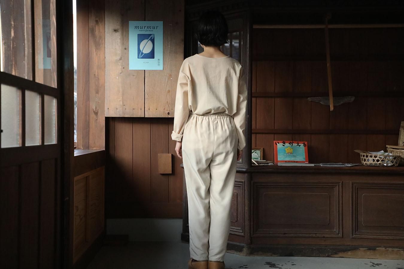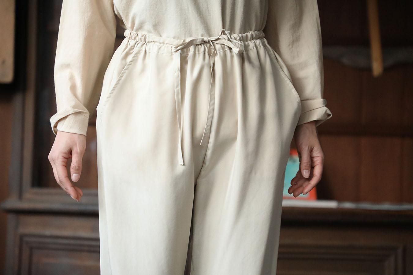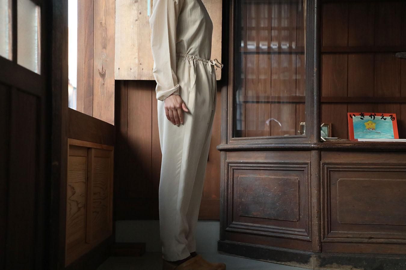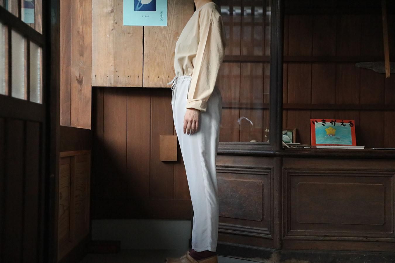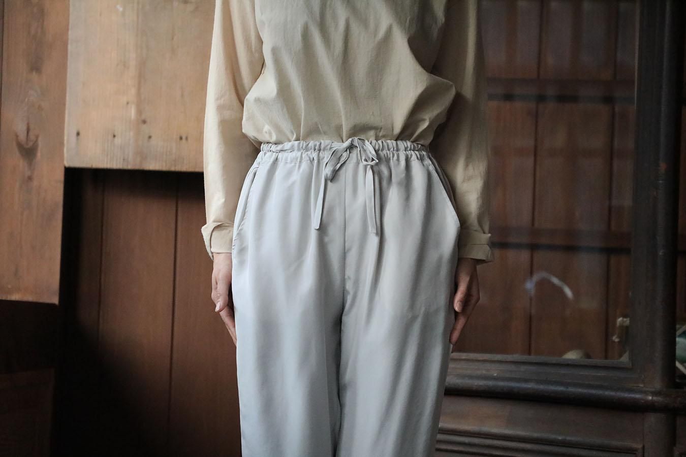 洗いをかけたシルクは、マットな質感で合わせやすく、