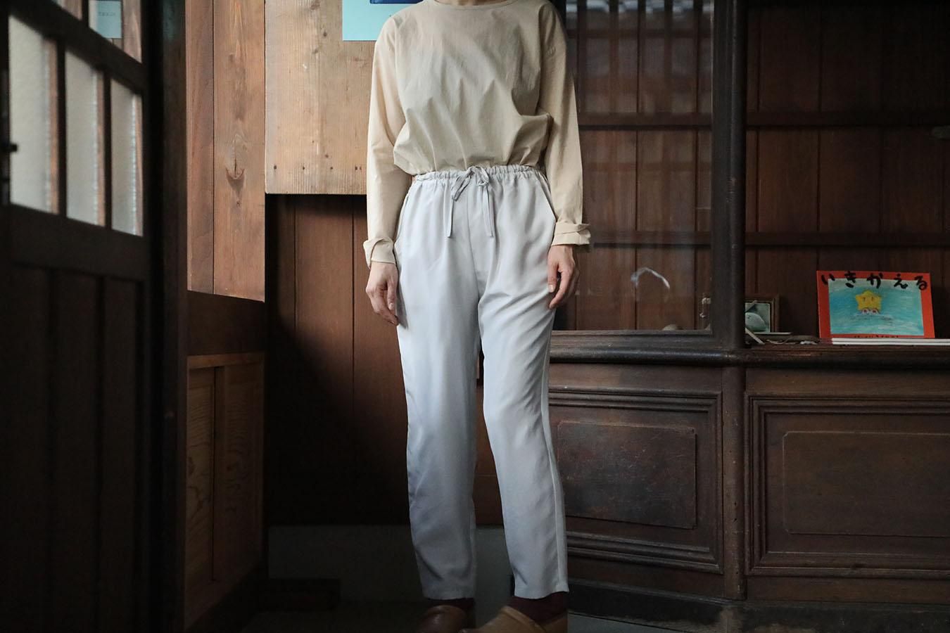 すっきりとしたテーパードシルエットで重ね着におすすめです。