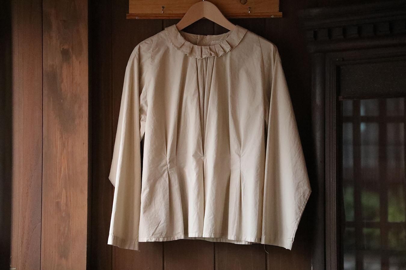 COSMIC WONDER Silk cotton broadcloth classic frilled shirt(citron ash)