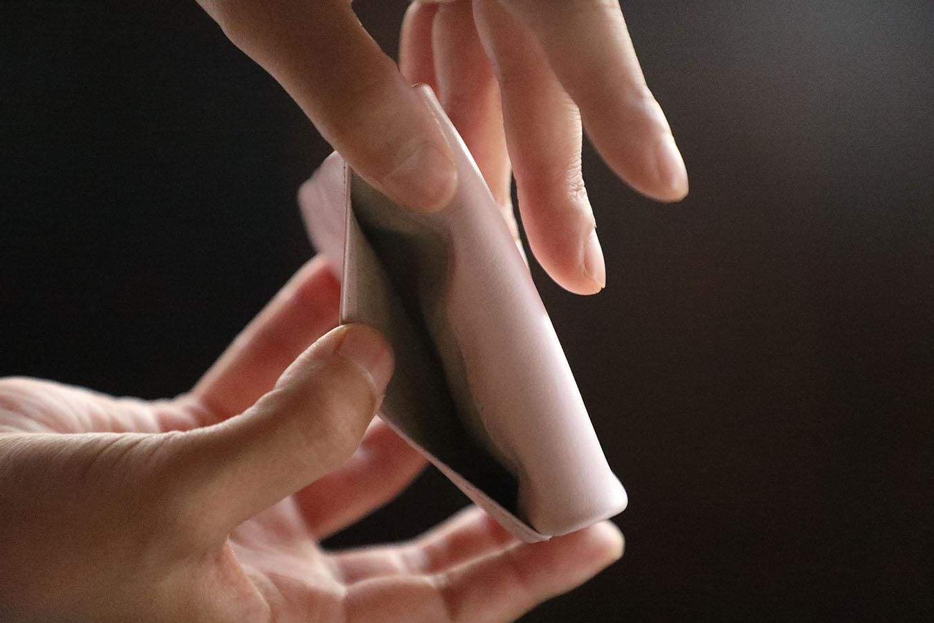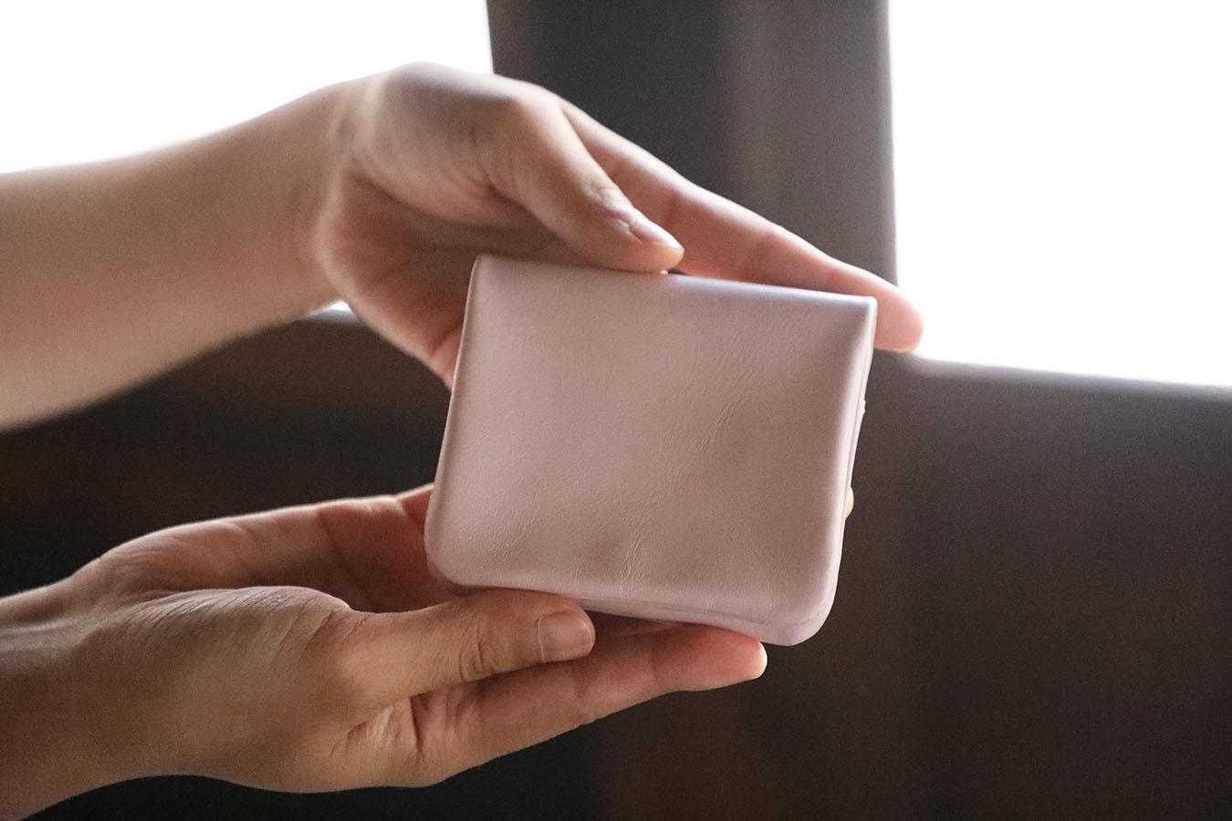 なんとも上品な淡い桃色のコインケースです。