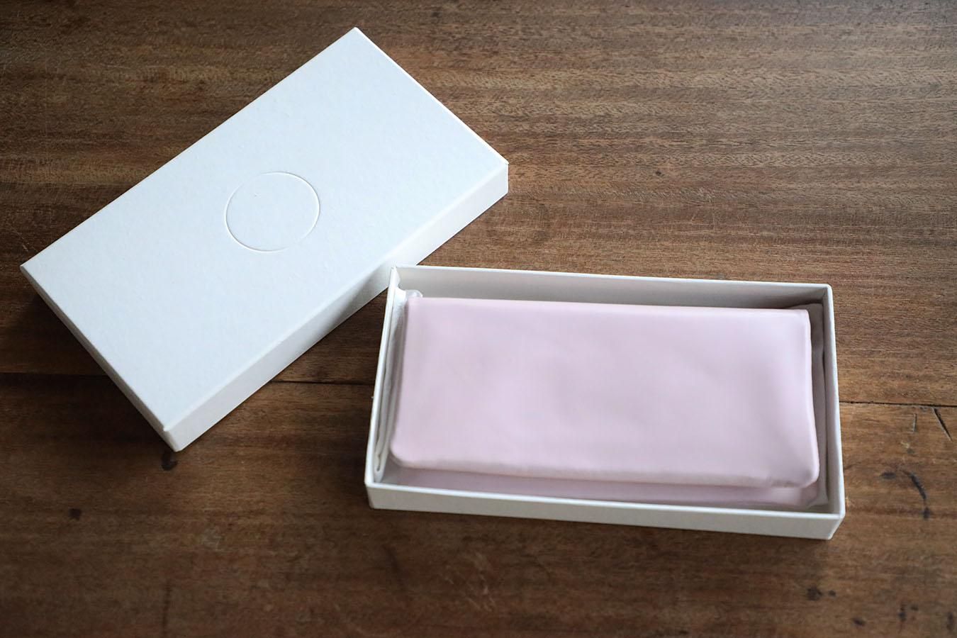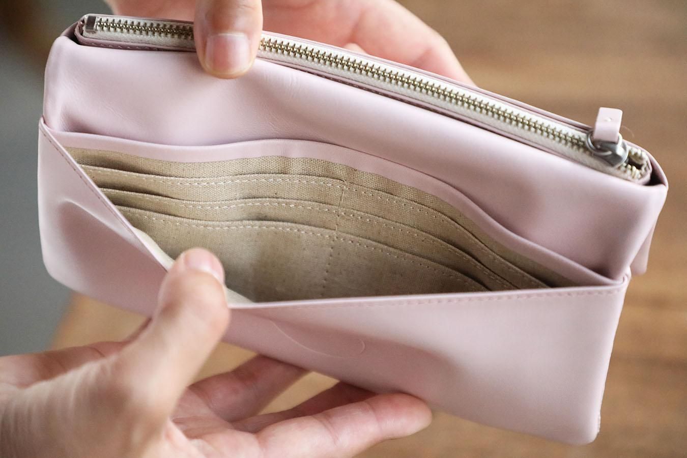 なかなか見つからない上品で美しい淡い桃色の財布。